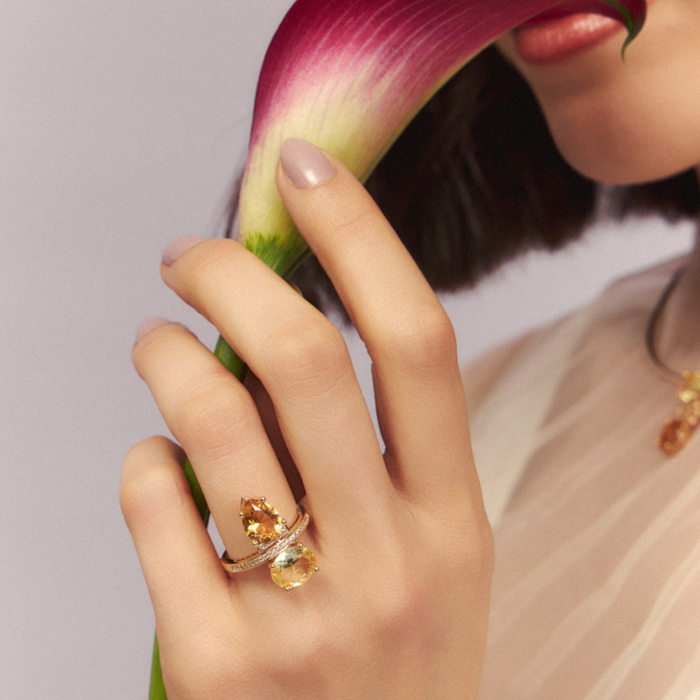 Com cristais citrino e ambar que capturam o brilho do sol e cravações em zircônia que refletem delicadamente a luz, o Anel Luce traduz o renascer da estação com sofisticação e presença.