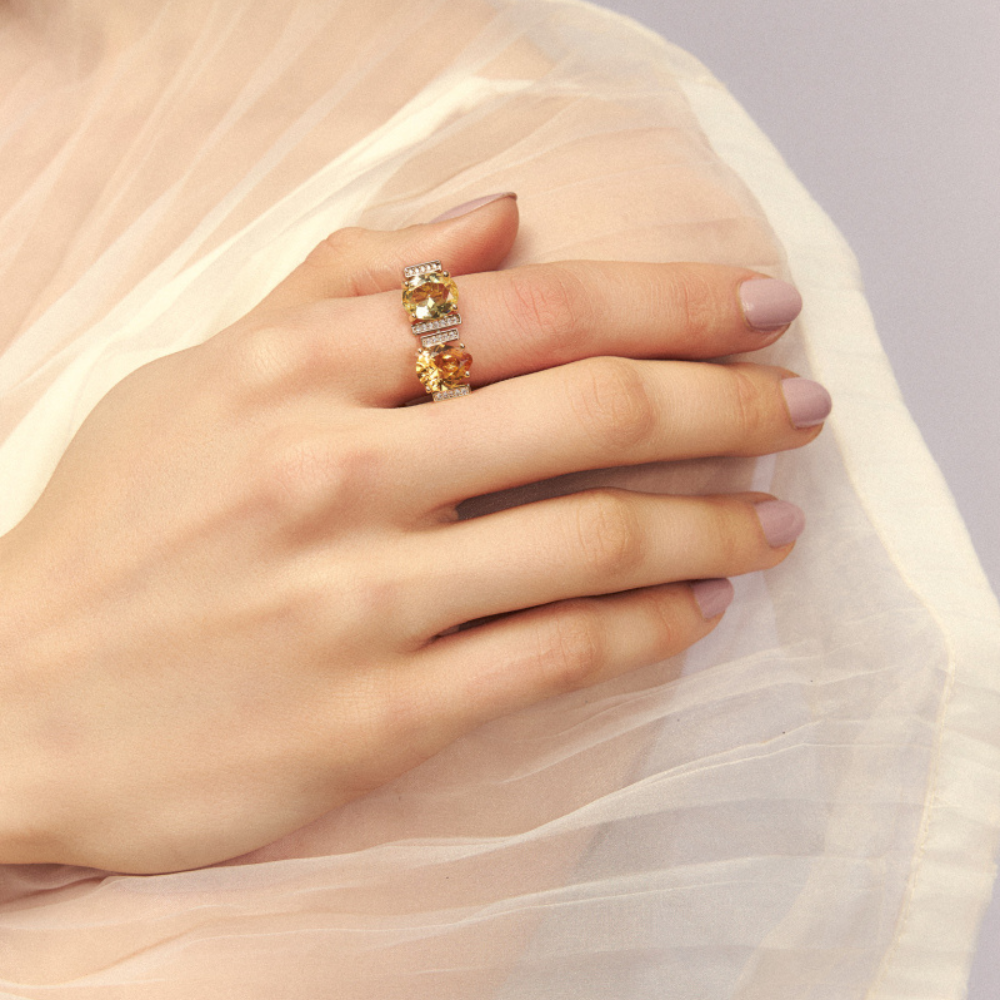 Com cristais citrino e ambar que capturam o brilho do sol e cravações em zircônia que refletem delicadamente a luz, o Anel Lume traduz o renascer da estação com sofisticação e presença.