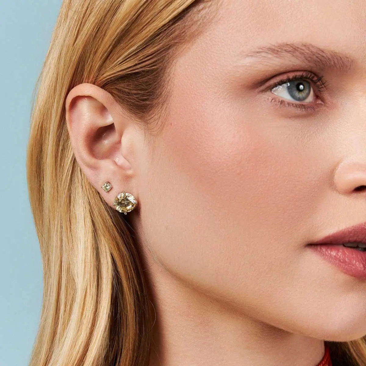 Brinco solitário ponto de luz banhado a ouro. Versátil, é ideal para quem busca um toque sofisticado e elegante em diferentes ocasiões.